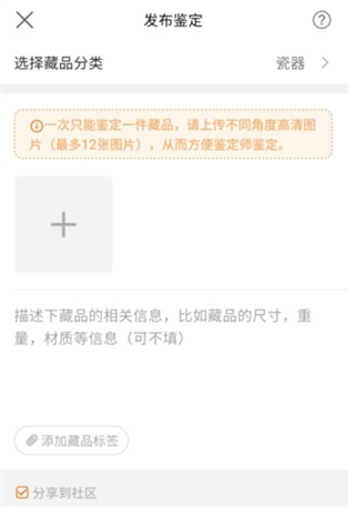 3、输入相关信息,描写藏品相关信息,发布之后就可以让大家一起鉴定了。
