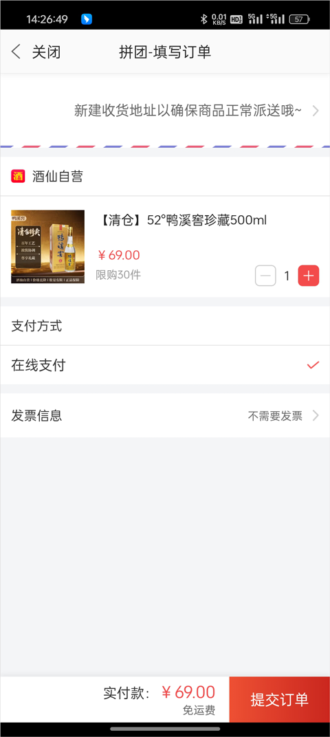 5、确认订单信息无误后完成支付,即可成功参与拼团。