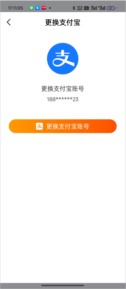 5、根据提示完成操作即可绑定成功;如果之前已绑定,则会显示“更换支付宝”。