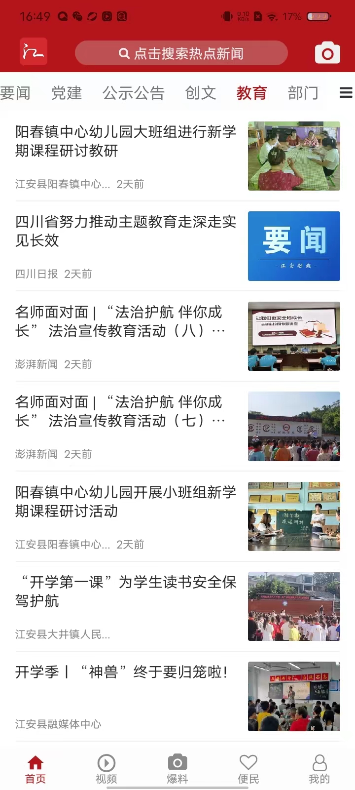 1、首先,用户在本站下载并安装好app后,打开进入,首页可以查看有关江安县的各种新闻资讯,上面还会有分类,比如说党建、教育、医疗、生活等各个方面,在上方还可以直接搜索感兴趣的热点新闻;