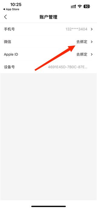 4、进入账号管理页面,用户可更换手机号,查看设备号,点击微信去绑定即可。