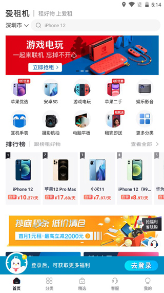 4.品类丰富:租手机、租电脑、租平板、租相机、租游戏机、租耳机、租家电、租手表、租无人机应有尽有