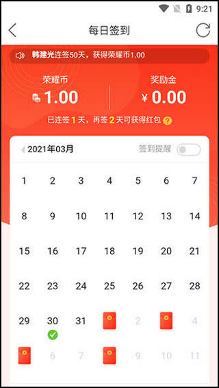 4、连续签到的天数越多奖励越多,还有红包奖励哦。