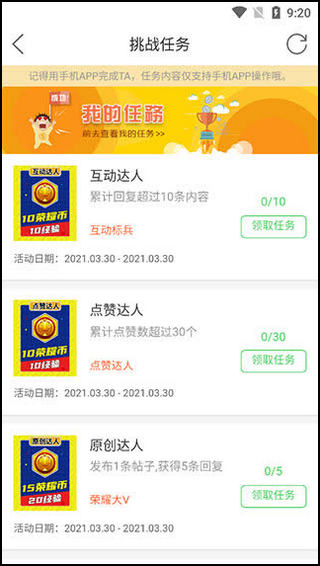 2、在里面可以领取各种任务,完成任务即可获得对应的荣耀币的数量的奖励。