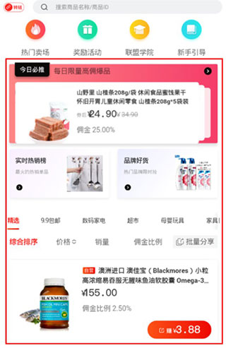 3、还有精选好物分类,好券商品、9.9包邮及各种类目的爆品推荐,帮您提高推广转化;