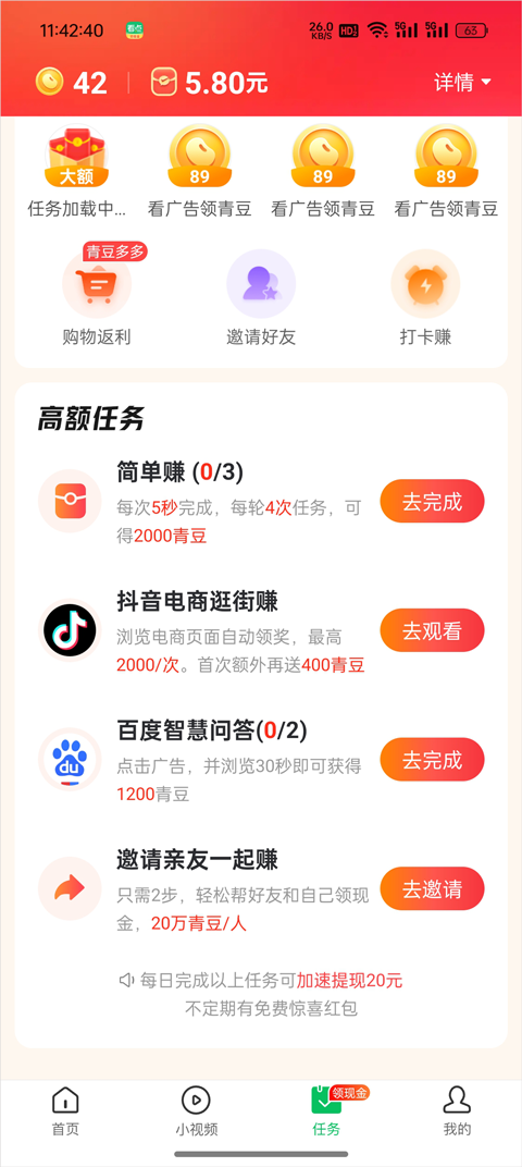 3、软件中大部分赚钱项目都在任务模块中,有需要的小伙伴可以根据自己的实际情况接取