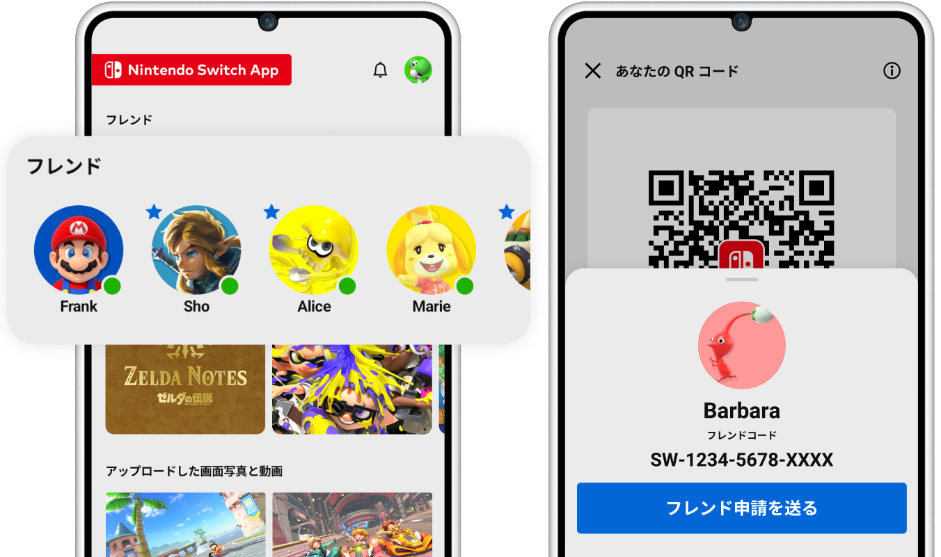 通过交换好友编号或QR Code,即使没有游戏主机,也可以通过智能手机成为好友。