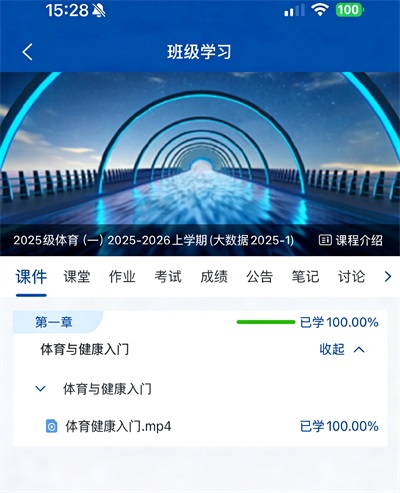 返回“班级学习”界回,点击“课件"检查视频学习进度。