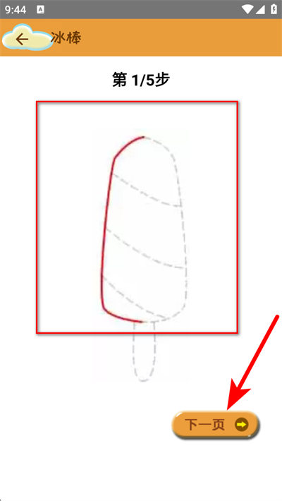 4、跟随步骤提示,点击下一页,完成冰棒简笔画绘制。