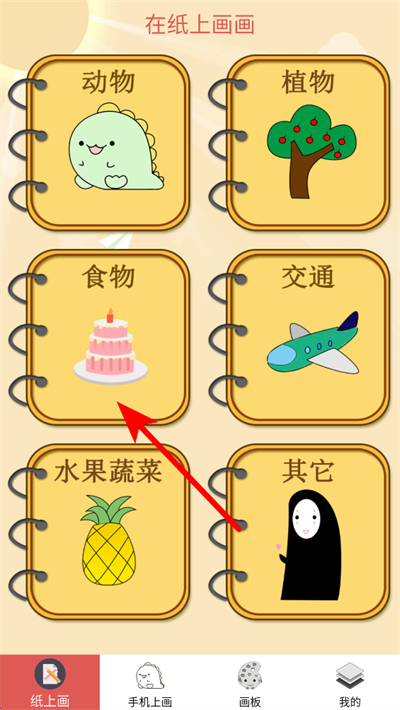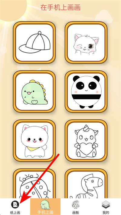 1、打开轻松学简笔画app,点击纸上画,进入分类绘画页面。