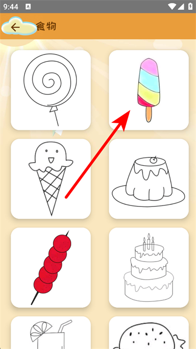 2、选择食物分类,进入食物主题简笔画选择界面。