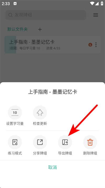 3、在菜单中选择导出牌组,进入导出设置选择界面。