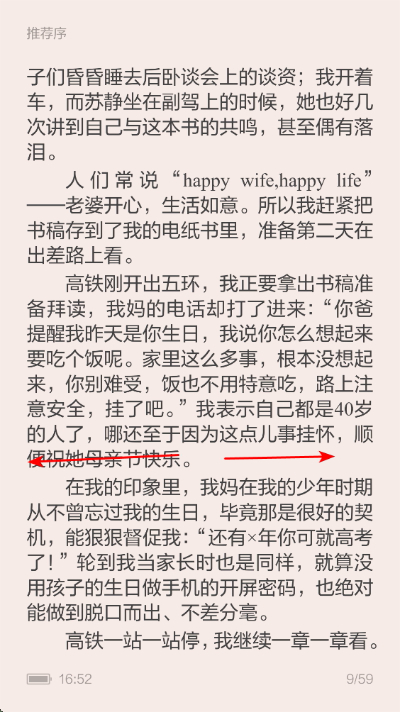 3、看书时,左右滑动可以切换页数。