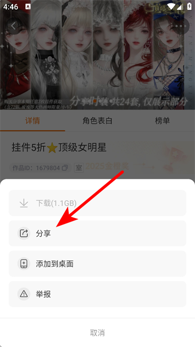 3、点击分享选项,进入分享渠道的选择与操作页面。