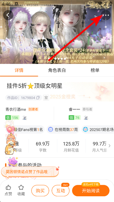 1、打开橙光阅读器,点击目标作品,进入作品详情的操作界面。