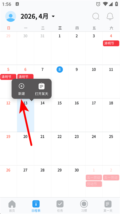 1、打开时间积木app,点击目标日期,唤出操作菜单。