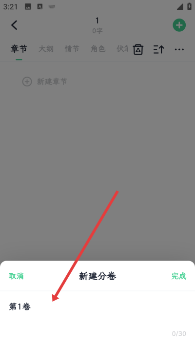 3、新建分卷弹窗中确认分卷名称,点击完成按钮。