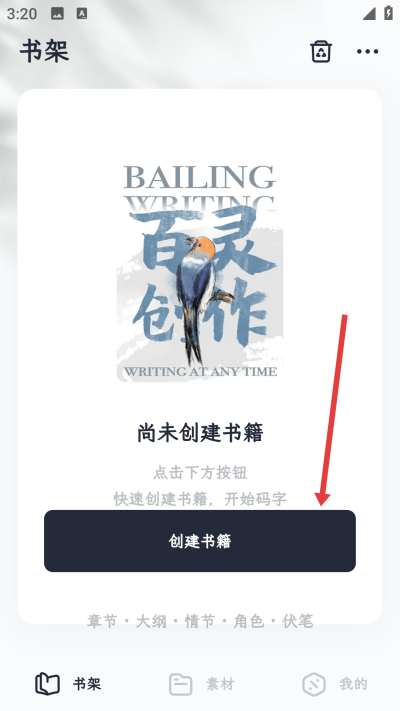 1、书架夜找到创建书籍,打开新建书籍界面,即可开始创建书籍。