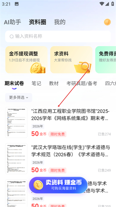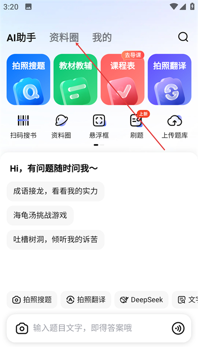 1、打开学习类APP,点击顶部的资料圈标签,进入资料浏览专区,选择对应学习阶段。