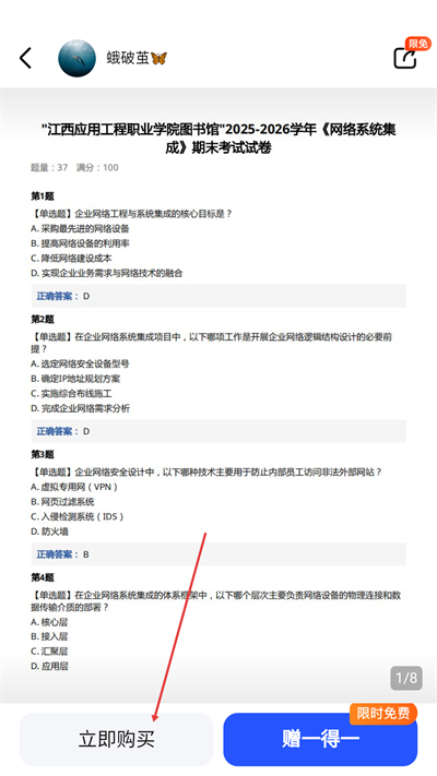 4、点击底部的立即购买按钮,完成支付即可获取该试卷的使用权限。