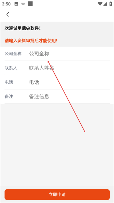 3、在资料填写页面,完善公司全称、联系人、电话等信息,为申请试用提供完整资料。