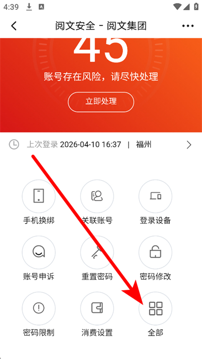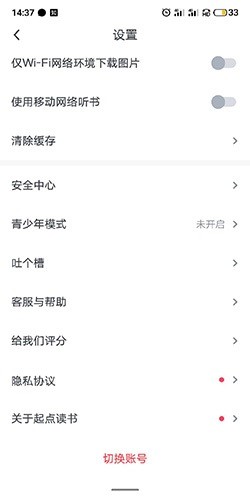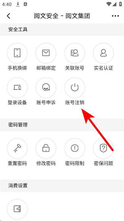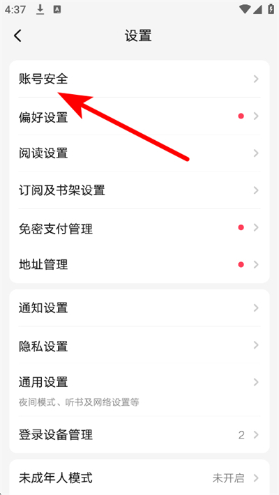 3、在设置页选择账号安全,进入阅文安全管理页面。