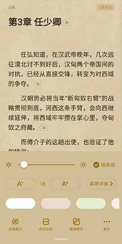 2、进入阅读界面,点击屏幕,弹出设置选择,点击底端的“设置”选项。