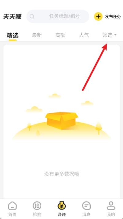 1、 打开美事,点击下方的“赚赚”进入页面。
