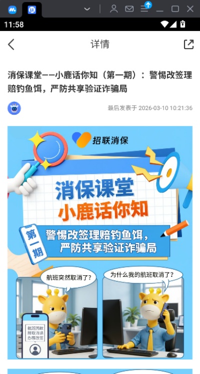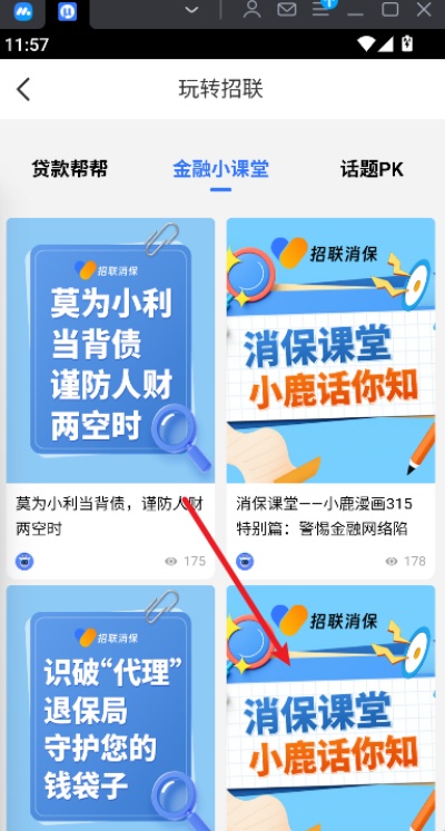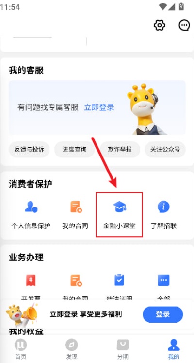 2、 滑动至“消费者保护”,点击“金融小课堂”。