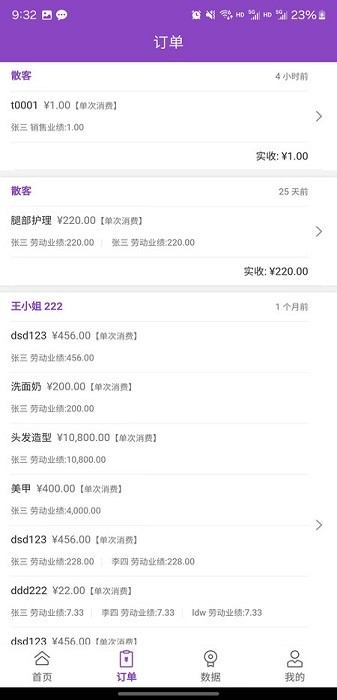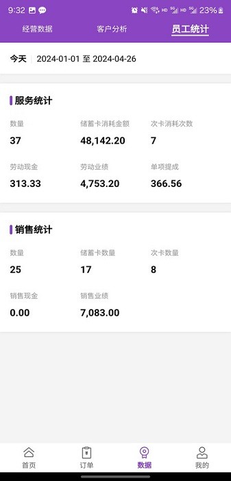 - 员工使用APP可以由老板端开通不同的权限使用不同的功能,查看订单、业绩、客户、开单收银。