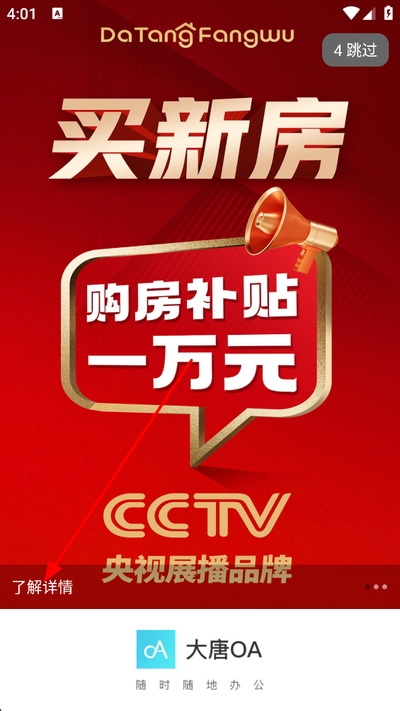 1、打开软件点击了解详情查看购房补贴活动,也可等待倒计时结束。
