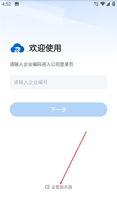 1、在瑞云服务云APP登录页面,点击底部设置服务器选项,进入服务器配置界面。