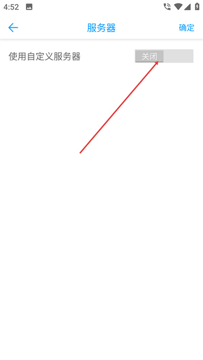 2、在服务器页面,点击使用自定义服务器右侧的开关,将其从关闭切换为开启状态。