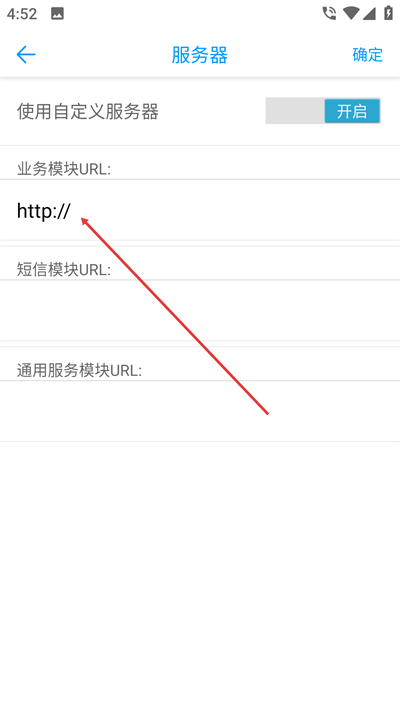 3、开启后,点击业务模块URL输入框,填写对应业务模块的服务器地址。