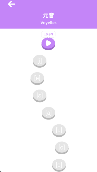 2、在学习模块中可进行法语基础音标训练,通过标准发音示例提升发音理解与模仿能力。