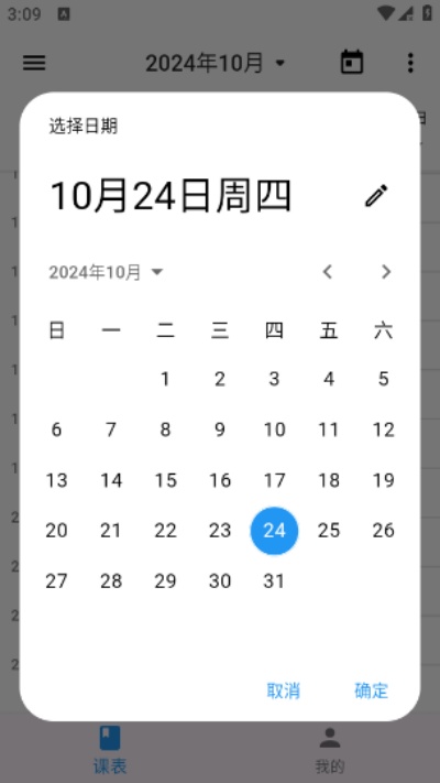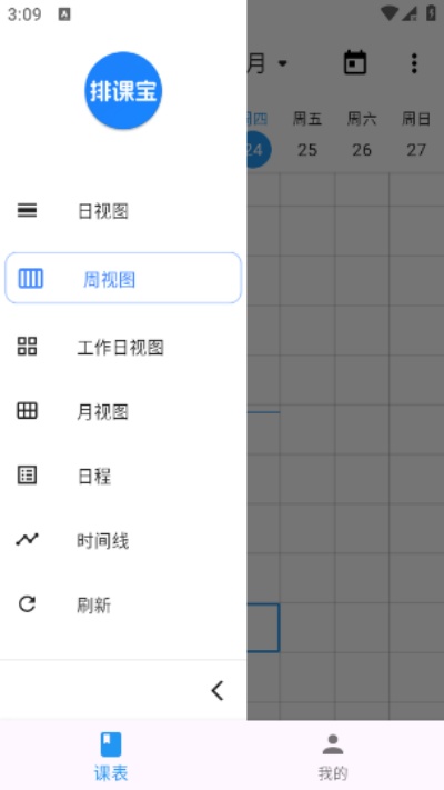 3、通过左侧功能菜单可切换不同显示方式的日程表,如日历模式或列表模式查看课表。