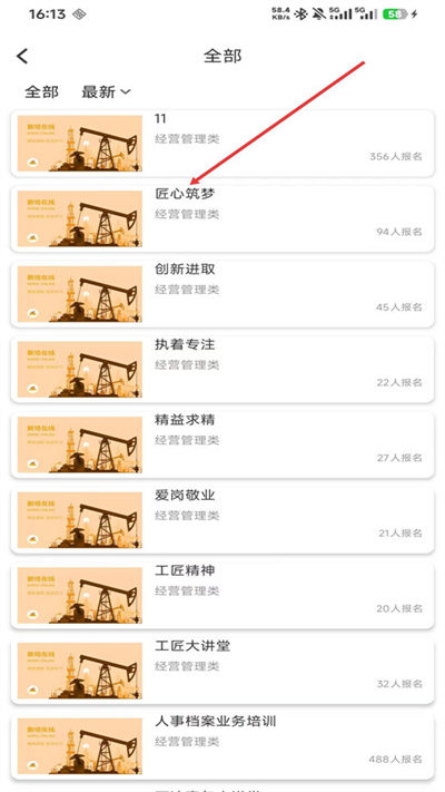 3、在课程列表中,找到并点击匠心筑梦课程,进入课程详情页。