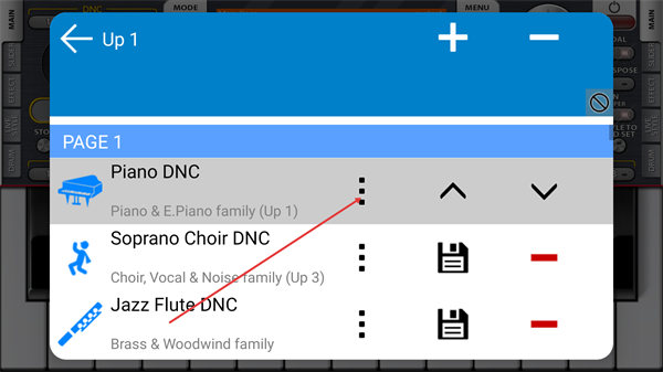 3、音色管理界面找到PianoDNC音色,点击它右侧的三点菜单按钮。