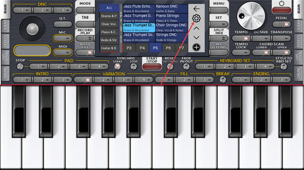 Volume/FX:设置键盘、风格和麦克风的音量或效果。