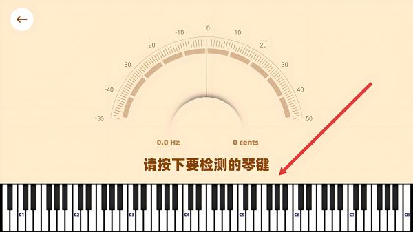 4、音准检测界面内按下需要检测的琴键,软件会实时显示音准数据。