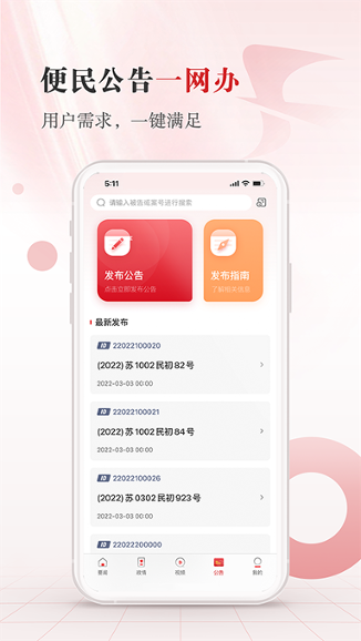 便捷保障当事人合法权益,缓解原本投送难、见报难问题。公告业务轻松办理,在线上传、在线审核、在线缴费、在线发布,全流程线上操作,用户需求,一键满足。