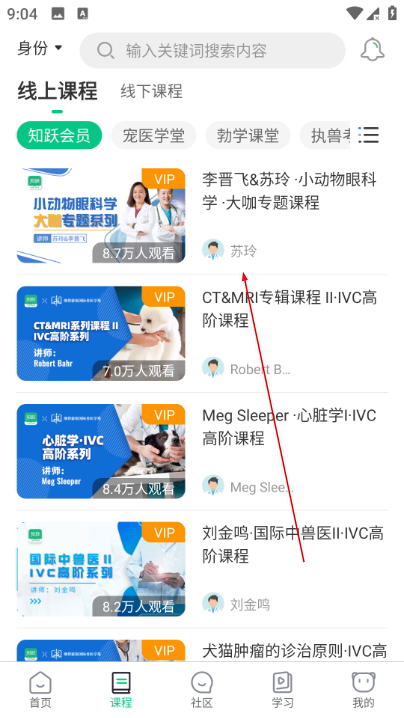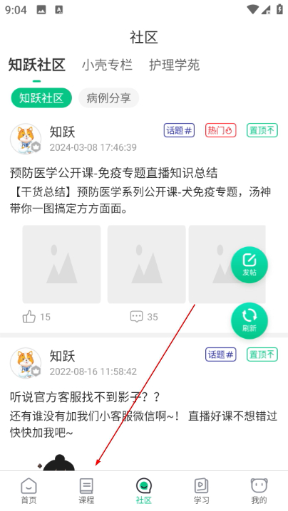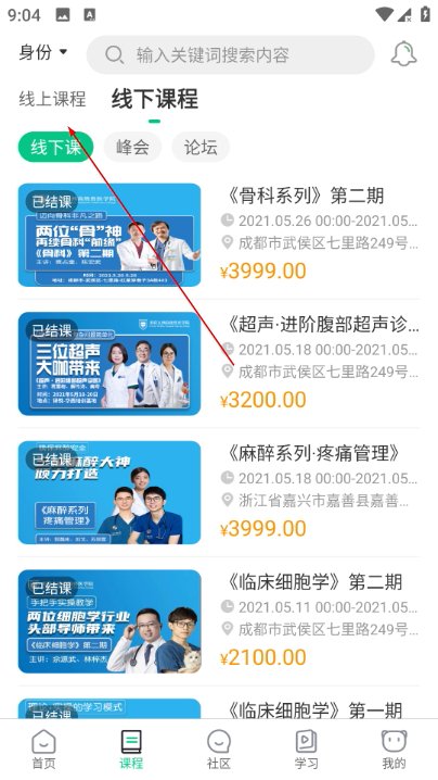 1、在社区页面底部导航栏找到课程选项,切换到课程页面,查看各类课程分类。