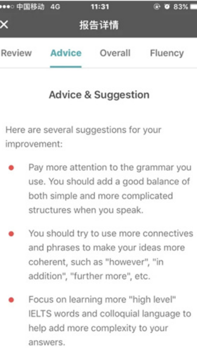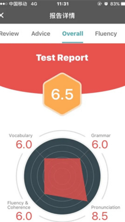 6、录音上传完成后约半小时即可查看系统生成的评分结果与详细点评报告。