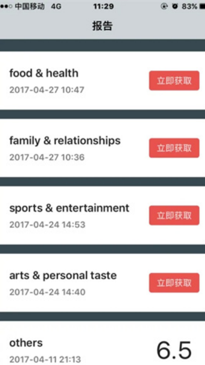 5、在结果页面点击“立即获取”按钮提交录音进入评分处理流程。