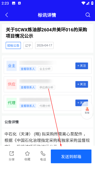 3、招标列表中点击感兴的条目,进入项目详情页,查看完整的项目公示内容。