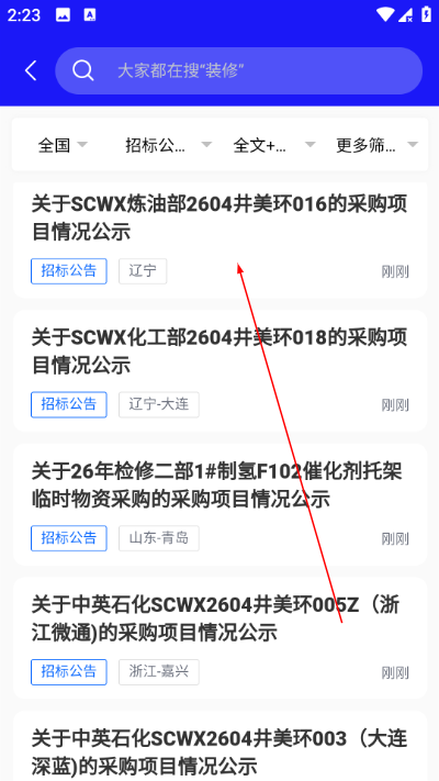 1、点击首页的招标查询按钮,进入招标信息查询页面。