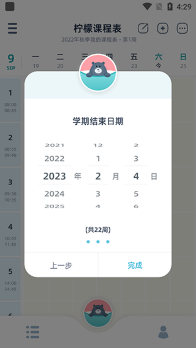 3、继续设置课程结束日期,用于完整限定该课程表的使用周期。