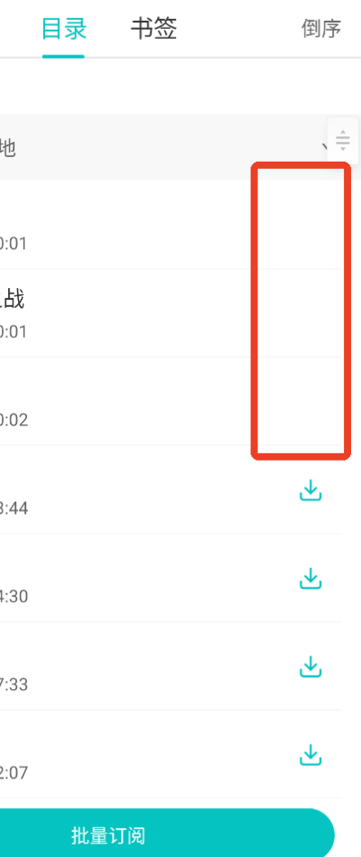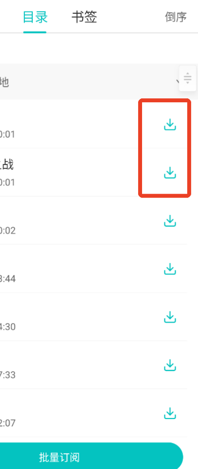 2、在目录列表中选择需要缓存的章节内容,点击对应章节右侧的下载按钮即可开始离线缓存操作。