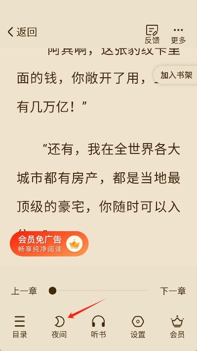 3、阅读过程中,可在阅读设置中点击开启“夜间模式”,调节屏幕亮度与对比度,有效保护视力,适配夜间阅读场景。