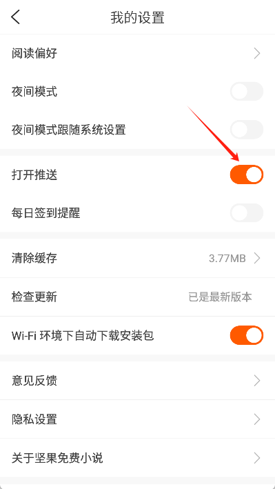 4、最后进入“我的设置”界面,找到推送相关选项,选择“打开推送”,即可接收小说更新通知,不错过任何精彩章节。